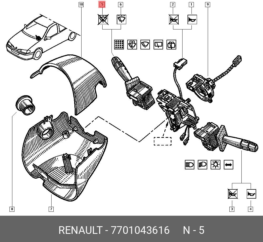 Commutateur de essuie vitre Renault Megane / Master II (Origine) 7701043616