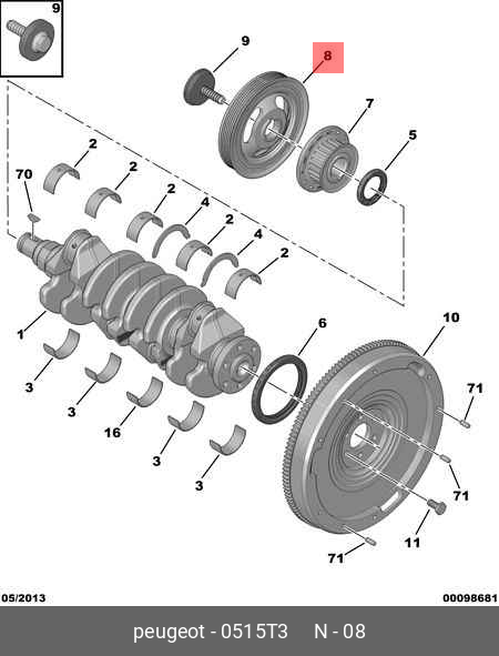 Poulie Vilebrequin Citroën / Peugeot 1.4 HDi – 1.6 HDi (Origine) 0515T3