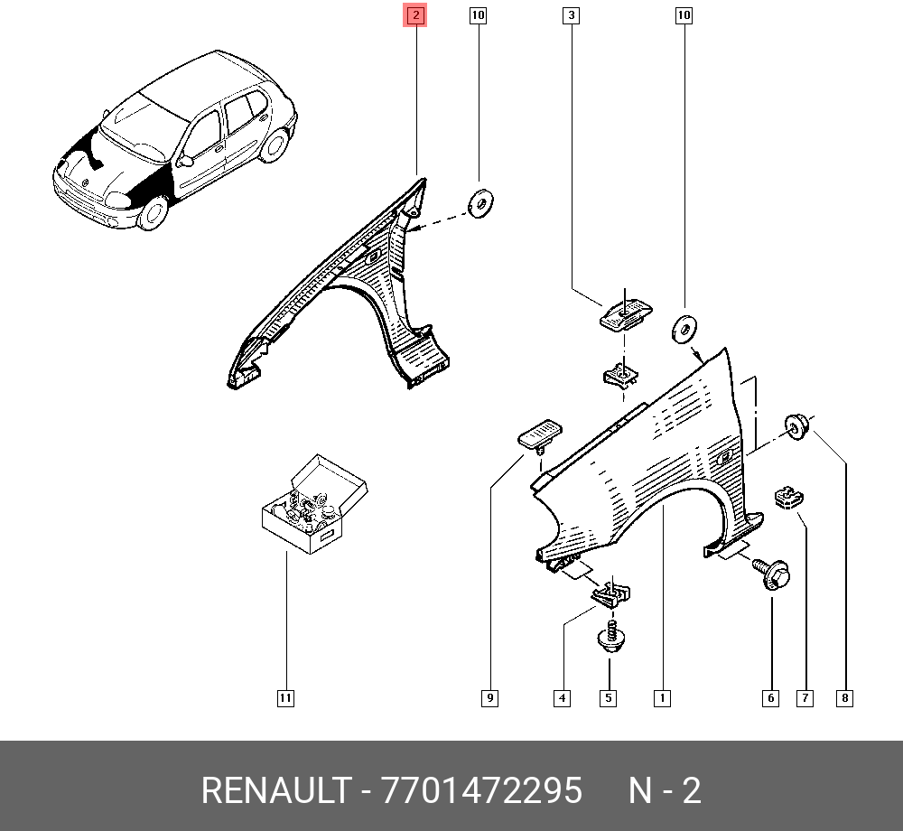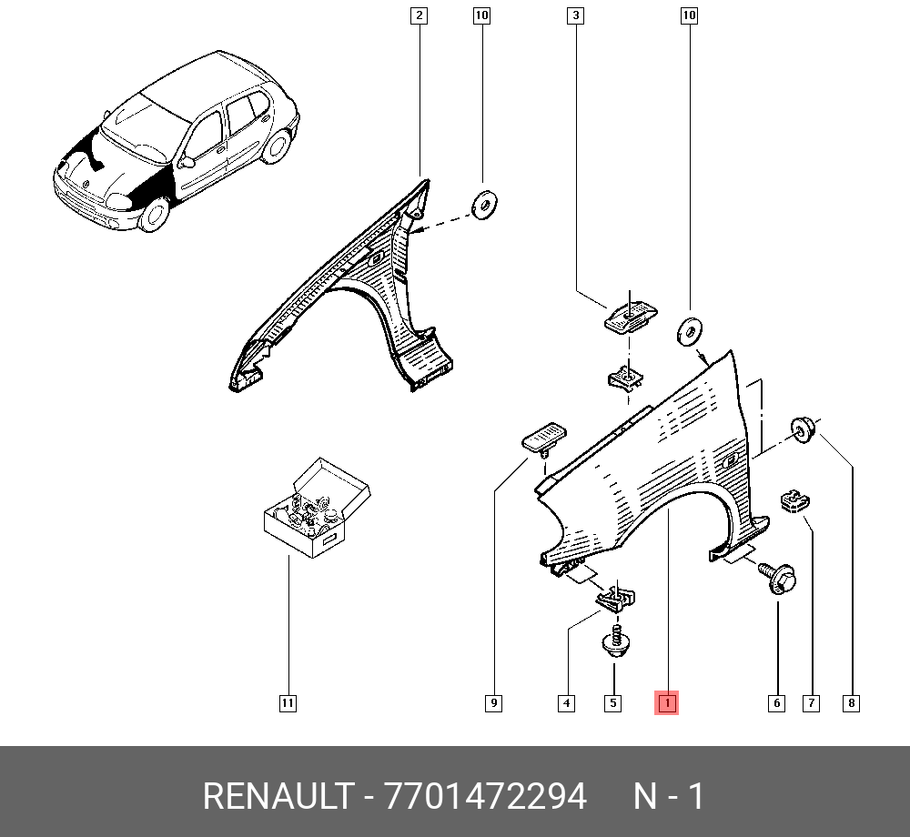 Aile Avant Kangoo Gauche (phase 1) (1998->2002) 7751691052